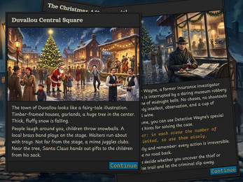 “The Christmas Quest of Duvallou” is an atmospheric text-based detective game where attention to detail and a cold, analytical mind are essential.